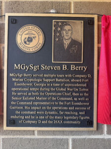 JCTM is proud to stand alongside MGySgt Steven B. Berry’s family and fellow Marines of Company D, Marine Cryptologic Support Bn, as Bldg 28431, Ft. Gordon, GA, is dedicated as “Berry Hall”